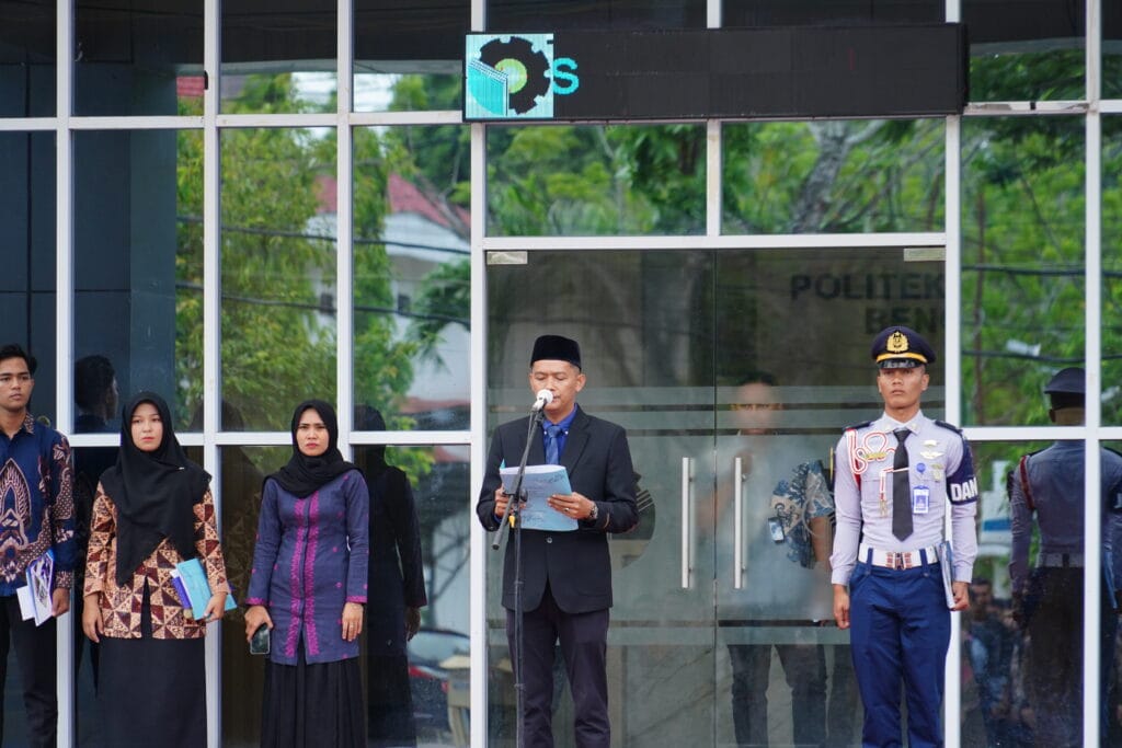 BENGKALIS – Politeknik Negeri Bengkalis (Polbeng) menggelar upacara peringatan Hari Kesaktian Pancasila pada Selasa (1/10) di halaman Gedung Kuliah Terpadu 3. Upacara yang dimulai pukul 07.30 WIB tersebut berlangsung khidmat dengan diikuti oleh dosen, tenaga kependidikan, serta mahasiswa.