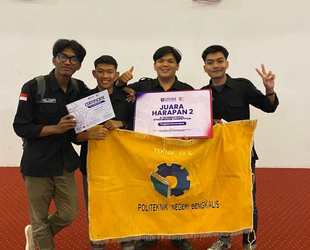 PEKANBARU – Tim mahasiswa Jurusan Teknik Sipil Politeknik Negeri Bengkalis (Polbeng) berhasil menorehkan prestasi membanggakan pada ajang 2nd International Stick Bridge Competition (ISBC) 2025 yang digelar di Universitas Abdurrab, Pekanbaru pada Selasa (30/9). Dalam kompetisi yang diikuti peserta dari tingkat universitas hingga SMA/SMK, tim Polbeng sukses meraih Juara Harapan 2 kategori tingkat universitas.