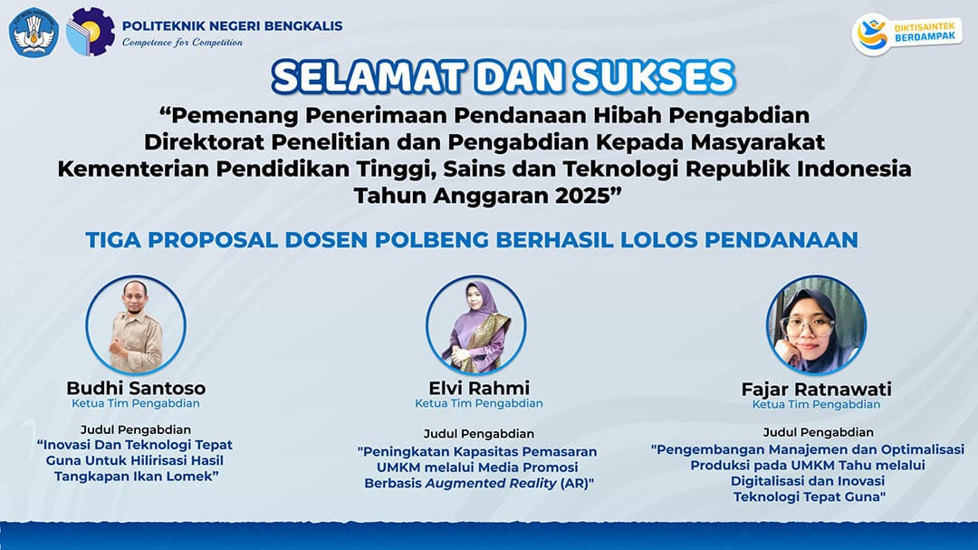 Sementara itu, Kepala P3M Polbeng, Syaiful Amri, menekankan bahwa program hibah internal ini menjadi wujud nyata kontribusi kampus bagi masyarakat. “Tujuannya adalah agar keterampilan dan hasil penelitian mahasiswa benar-benar memberi manfaat langsung, khususnya bagi nelayan lokal,” ujarnya.